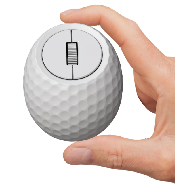 Mini souris pour le golfeur passionné. Avec surface aspect balle de golf, agréable au toucher. Un cadeau idéal pour tout golfeur.